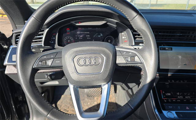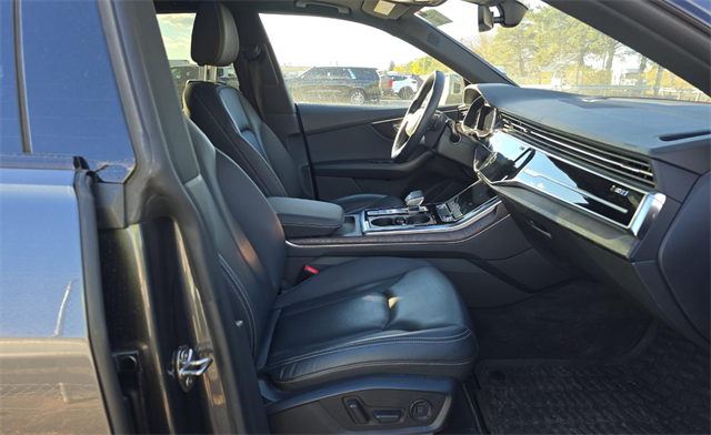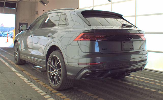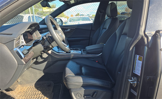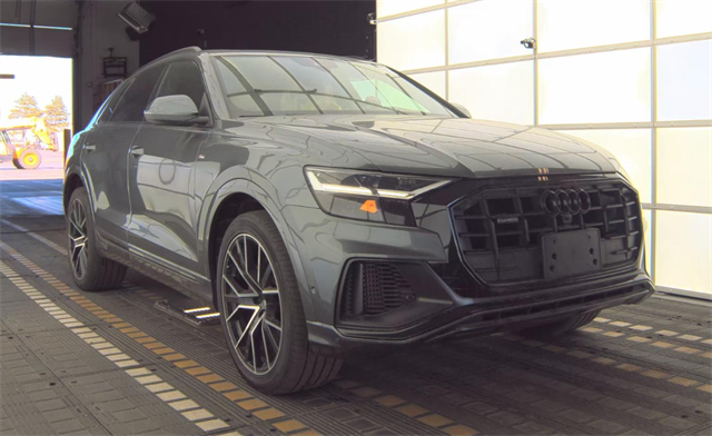 low miles, only 43097 miles, **NAVIGATION**, **LEATHER**, **MOONROOF**, BLUETOOTH, ALL BOOKS AND KEYS, **Back-Up Camera**, **POWER LIFTGATE**, **HEATED/COOLED SEATS**, **APPLE CARPLAY/ ANDROID AUTO**, Q8 55 Premium Plus quattro, 3.0L V6 Turbocharged DOHC 24V LEV3-ULEV125 335hp, 8-Speed Automatic with Tiptronic, quattro, Daytona Gray Pearl Effect, Black w/Leather Seating Surfaces, 4-Wheel Disc Brakes, 4-Zone Climate Control, ABS brakes, Adaptive suspension, Air Conditioning, AM/FM radio: SiriusXM, Audi Phone Box w/Wireless Charging, Audi Side Assist w/Rear Cross Traffic Assist, Audi smartphone interface (Apple CarPlay/Android Auto), Auto High-beam Headlights, Bang & Olufsen 3D Premium Sound System, Compass, Contour/Ambient LED Interior Lighting Package, Convenience Package, Driver & Passenger Front Seats w/Ventilation, Exterior Parking Camera Rear, Front dual zone A/C, Front fog lights, Fully automatic headlights, Garage door transmitter: HomeLink, Heated Auto-Dimming Power Folding Exterior Mirrors, Heated Front Bucket Seats, Interior Protection Package, Leather Seating Surfaces, Memory seat, Navigation System, Outside temperature display, Panic alarm, Power driver seat, Power Liftgate, Power moonroof, Power passenger seat, Premium Plus Package, Radio: Audi MMI Navigation Plus w/Touch Response, Rain sensing wipers, Rear air conditioning, Remote keyless entry, S line Plus Package, S line Style Package, S-Line Exterior Package, Security system, Speed control, Split folding rear seat, Steering wheel memory, Steering wheel mounted audio controls, Top View Camera System, Towing 7 Pin Connector, Towing Package, Traction control, Wheels: 22`` Audi Sport 5-V-Spoke Star Design.