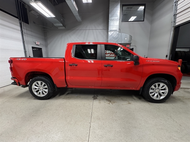BLUETOOTH, ALL BOOKS AND KEYS, **REMOTE START**, **Back-Up Camera**, **APPLE CARPLAY/ ANDROID AUTO**, Silverado 1500 Custom, 2.7L Turbo, 4WD, Red Hot, Jet Black w/Cloth Seat Trim, 10-Way Power Driver Seat w/Lumbar, 120-Volt Bed Mounted Power Outlet, 4-Wheel Disc Brakes, 40/20/40 Front Split-Bench Seat, ABS brakes, Air Conditioning, Apple CarPlay/Android Auto, Auto High-beam Headlights, Bluetooth® For Phone, Compass, Custom Convenience Package, Custom Value Package, Deep-Tinted Glass, Electric Rear-Window Defogger, Electronic Cruise Control, Following Distance Indicator, Forward Collision Alert, Front Pedestrian Braking, Fully automatic headlights, HD Rear Vision Camera, Heated door mirrors, High Capacity Suspension Package, Hitch Guidance, Integrated Trailer Brake Controller, LED Cargo Area Lighting, OnStar & Chevrolet Connected Services Capable, Outside temperature display, Power door mirrors, Power driver seat, Preferred Equipment Group 1CX, Premium audio system: Chevrolet Infotainment 3, Remote Keyless Entry, Remote Vehicle Starter System, SiriusXM Radio, Split folding rear seat, Theft Deterrent System (Unauthorized Entry), Traction control, Trailering Package, Wheels: 20`` x 9`` High Gloss Black Painted Alum, Wireless Phone Projection.