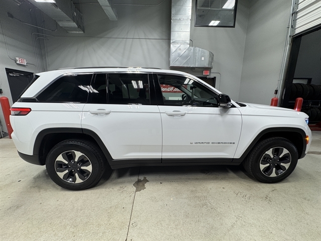 low miles, only 25383 miles, **ONE OWNER**, ***CLEAN CARFAX***, **NAVIGATION**, **LEATHER**, **MOONROOF**, BLUETOOTH, ALL BOOKS AND KEYS, **REMOTE START**, **Back-Up Camera**, **POWER LIFTGATE**, **ADAPTIVE CRUISE CONTROL**, **HEATED/COOLED SEATS**, **HEATED SEATS & STEERING WHEEL**, Grand Cherokee 4xe Base, 2.0L I4 DOHC, 8-Speed Automatic, 4WD, Bright White Clearcoat, Global Black Leather, 10 SPEAKER AUDIO, 10.1`` Touchscreen Display, 2nd-Row Manual Window Shades, 4-Wheel Disc Brakes, 4G LTE Wi-Fi Hot Spot, ABS brakes, All Radio Equipped Vehicles, AM/FM radio: SiriusXM with 360L, Apple CarPlay, Auto-Dimming Exterior Driver Mirror, Automatic temperature control, Capri Leather Seats w/Perforated Inserts, Connected Travel & Traffic Services, Connectivity - US/Canada, Disassociated Touchscreen Display, Dual-Pane Panoramic Sunroof (DISC), Electronic Stability Control, Front dual zone A/C, Google Android Auto, GPS Antenna Input, GPS Navigation, HD Radio, Heated door mirrors, Heated front seats, Heated rear seats, Heated steering wheel, Integrated Center Stack Radio, Integrated Off-Road Camera, Integrated Voice Command w/Bluetooth, Intersection Collision Assist System, Leather steering wheel, Luxury Tech Group II, Memory seat, Memory Steering Column, Outside temperature display, Overhead console, ParkSense Front/Rear Park Assist w/Stop, ParkView Rear Back-Up Camera, Passive Entry - Front/Rear Doors, Liftgate, Power driver seat, Power Liftgate, Power passenger seat, Power Tilt/Telescope Steering Column, Pur Wrapped Instrument Panel, Quick Order Package 27F, Radio: Uconnect 5 Nav w/10.1`` Display, Rain Sensitive Windshield Wipers, Rear Back Up Camera Washer, Rearview Autodim Digital Display Mirror, Remote keyless entry, Speed-Sensitive Wipers, Split folding rear seat, Spoiler, Steering wheel mounted audio controls, Surround View Camera System, Telescoping steering wheel, Traction control, USB Host Flip, Ventilated Front Seats, Wheels: 18`` x 8`` Fully Painted Aluminum, Wireless Charging Pad.
