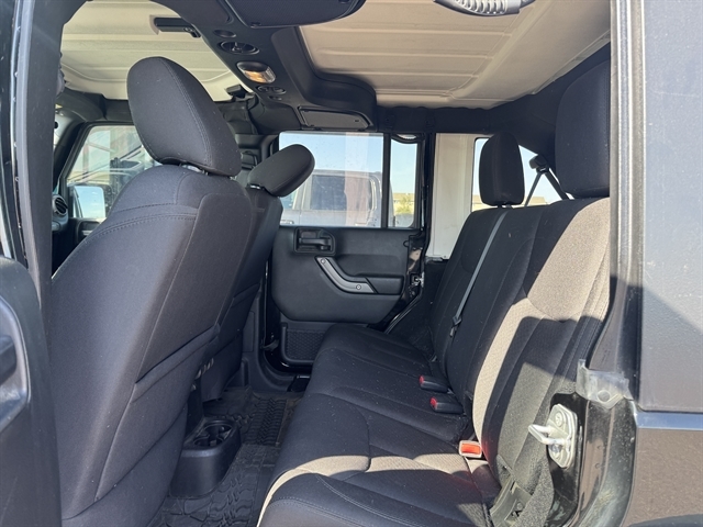BLUETOOTH, ALL BOOKS AND KEYS, Wrangler Unlimited Sport, 3.6L V6 24V VVT, 5-Speed Automatic, 4WD, Black Clearcoat, Black w/Cloth Seats, 17`` x 7.5`` Aluminum Wheels, 4-Wheel Disc Brakes, 8 Speakers, ABS brakes, Air Conditioning, AM/FM radio, Black 3-Piece Hard Top, Compass, Connectivity Group, Deep Tint Sunscreen Windows, Delete Sunrider Soft Top, Electronic Stability Control, Freedom Panel Storage Bag, Front 1-Touch Down Power Windows, Front Bucket Seats, Front fog lights, Outside temperature display, Power Convenience Group, Power Heated Mirrors, Power Locks, Quick Order Package 24S, Rear Window Defroster, Rear Window Wiper/Washer, Remote USB Port, SIRIUS Satellite Radio, Speed control, Split folding rear seat, Traction control, Uconnect Voice Command w/Bluetooth.