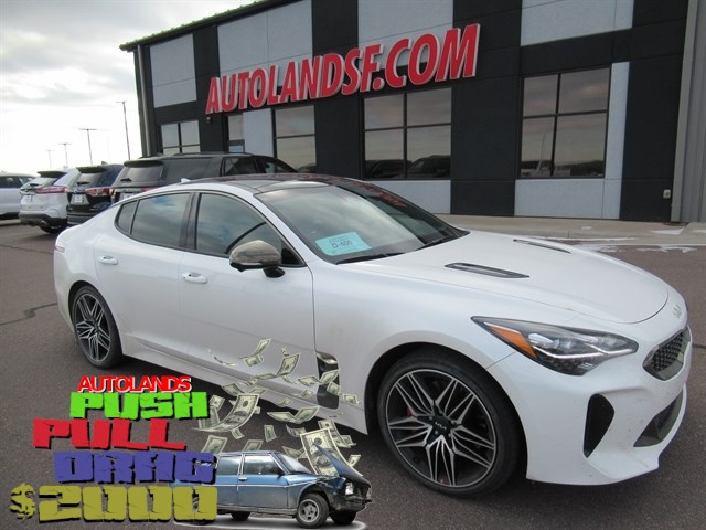 Autoland - SD is offering this 2022 Kia Stinger GT2, in Snow White Pearl and Black Leather, low miles, only 24862 miles, **ONE OWNER**, ***CLEAN CARFAX***, **LOCAL TRADE IN**, **LEATHER**, BLUETOOTH, ALL BOOKS AND KEYS, **Back-Up Camera**, **HEATED/COOLED SEATS**, Stinger GT2, 4D Sedan, 3.3L V6 DGI, 8-Speed Automatic, AWD, Snow White Pearl, Black Leather, 15 Speakers, 4-Wheel Disc Brakes, ABS brakes, Apple CarPlay & Android Auto, Auto High-beam Headlights, Auto tilt-away steering wheel, Auto-dimming Rear-View mirror, Compass, Electronic Stability Control, Garage door transmitter: HomeLink, Heads-Up Display, Heated & Ventilated Front Bucket Seats, Heated rear seats, Heated steering wheel, Memory seat, Navigation System, Outside temperature display, Overhead console, Power driver seat, Power Liftgate, Power moonroof, Power passenger seat, Rain sensing wipers, Speed-Sensitive Wipers, Spoiler, Steering wheel memory, Steering wheel mounted audio controls, Telescoping steering wheel, Traction control, Wheels: 8.0J x 19 Front/8.5J x 19 Rear Alloy.