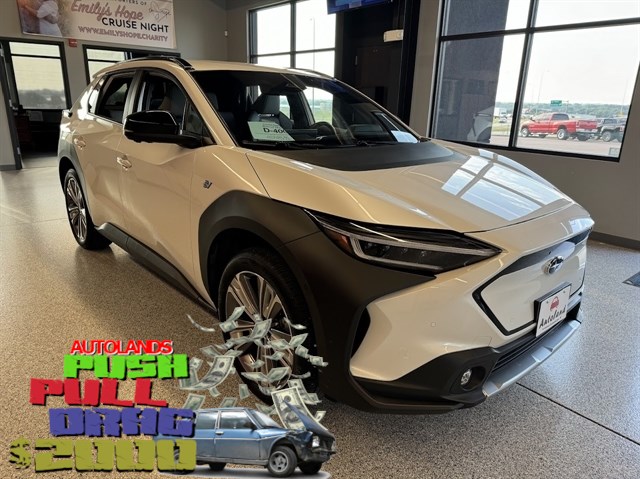 low miles, only 3402 miles, **ONE OWNER**, ***CLEAN CARFAX***, **NAVIGATION**, **LEATHER**, BLUETOOTH, ALL BOOKS AND KEYS, **Back-Up Camera**, **POWER LIFTGATE**, **ADAPTIVE CRUISE CONTROL**, **HEATED SEATS & STEERING WHEEL**, Solterra Limited, Electric Motor, 1-Speed Automatic, AWD, Cosmic White Pearl, Gray/Blue w/StarTex Upholstery, 11 Speakers, 4-Wheel Disc Brakes, ABS brakes, AM/FM radio: SiriusXM, Auto High-beam Headlights, Auto-dimming Rear-View mirror, Automatic temperature control, Electronic Stability Control, Front dual zone A/C, Front fog lights, Garage door transmitter: HomeLink, harman/kardon® Speakers, Heated door mirrors, Heated Front Bucket Seats, Heated rear seats, Heated steering wheel, Leather steering wheel, Memory seat, Navigation system: Cloud Navigation System (Subscription required), Outside temperature display, Power driver seat, Power Liftgate, Radio: Subaru Solterra Connect 12.3`` Multimedia System, Rain sensing wipers, Remote keyless entry, Roof rack: rails only, Spoiler, StarTex Upholstery, Steering wheel mounted audio controls, Telescoping steering wheel, Traction control, Wheels: 20`` x 7.5`` J Aluminum-Alloy Gray Finish.
