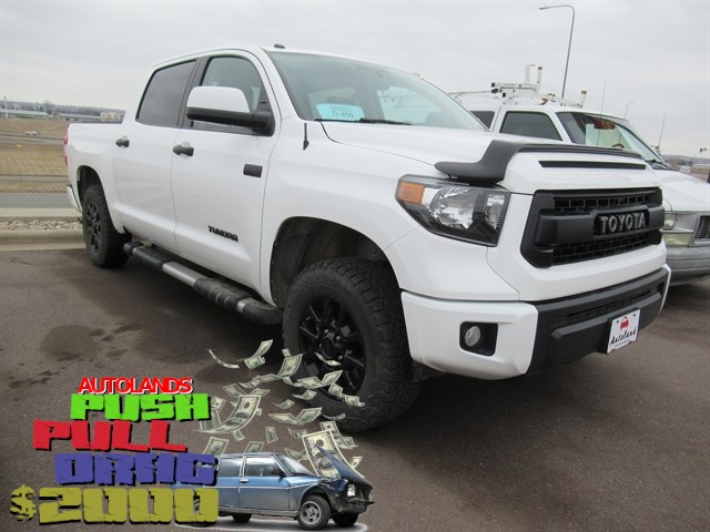 **NAVIGATION**, **LOCAL TRADE IN**, **LEATHER**, BLUETOOTH, ALL BOOKS AND KEYS, **BED LINER**, **Back-Up Camera**, **HEATED SEATS**, Tundra TRD Pro, 5.7L 8-Cylinder SMPI DOHC, 6-Speed Automatic Electronic with Overdrive, 4WD, White, Black w/Leather Seat Trim (LB) or Leather Seat Trim w/TRD Off-Road Package, 38 Gallon Fuel Tank Capacity, 4-Wheel Disc Brakes, 9 Speakers, ABS brakes, Anti-Theft Immobilizer w/Alarm, Auto-Dimming Rear-View Mirror, Color-Keyed Power Heated Exterior Mirrors, Compass, Deck Rail System, Electronic Stability Control, Entune App Suite, Exterior Parking Camera Rear, Front fog lights, Garage door transmitter, Heated door mirrors, HomeLink Universal Transceiver, Illuminated entry, Leather Seat Trim (LF), Leather Shift Knob, Navigation System, Outside temperature display, Power driver seat, Radio: Entune AM/FM/HD w/CD Player, Remote keyless entry, SIRIUSXM Satellite Radio, Spray In Bedliner, Steering wheel mounted audio controls, Telescoping steering wheel, Traction control, TRD Pro Package, Wheels: 18`` x 8J Split 5-Spoke TRD Black Alloy.